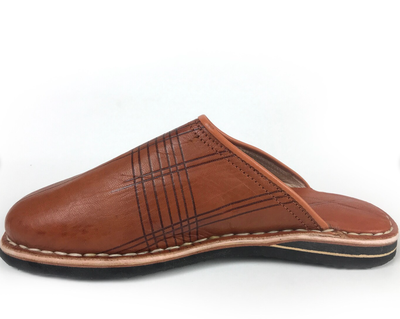 Brown Comfortable Sabot Moroccan Handmade Slippers, Men Leather Babouche, Moroccan Shoes, Natural leather Blue, Men slippers